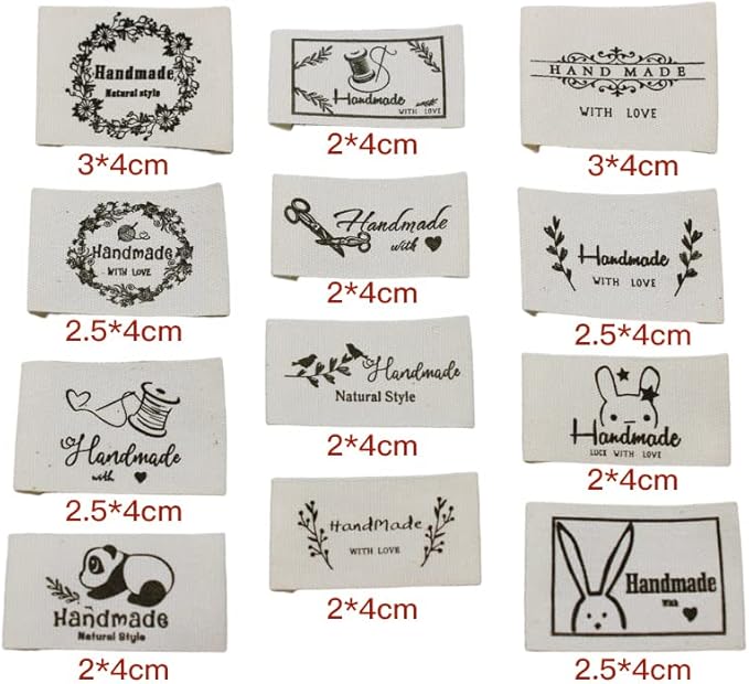 LOYELEY ハンドメイド用 タグ 12種 48枚セット フラワー ウサギ パンダ コットン 綿 ロゴ ワッペン ラベル 縫製 手芸 DIY 手作り Handmade ポーチ/衣類/帽子などに飾り かわいい おしゃれ (24枚入り)