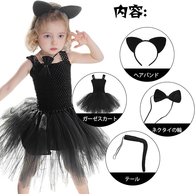 限定商品 黒猫 ネコ ハロウィン 衣装 黒猫 猫 ねこ 魔女ドレス 悪魔なりきり 変装 変身 キッズ服 セット ドレス 猫耳カチューシャ 舞台服 結婚式 演出用 文化祭 発表会 イベント パーティー