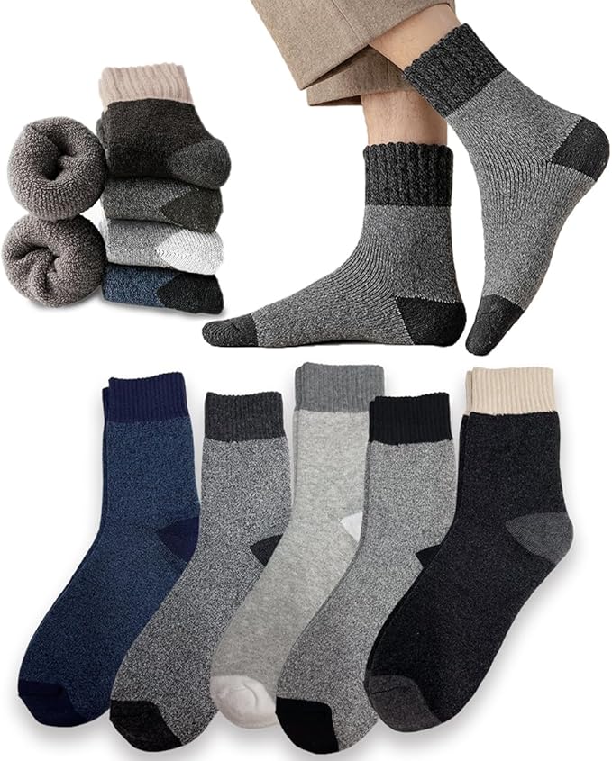 [MOSOTECH] 靴下 メンズ 冬 温かい 厚手 5足セット 秋冬防寒 暖かい ソックス・ 通気性 ソックス・防寒 保温 耐久性 伸縮性・室内 アウトドア 登山 キャンプ 24-28㎝
