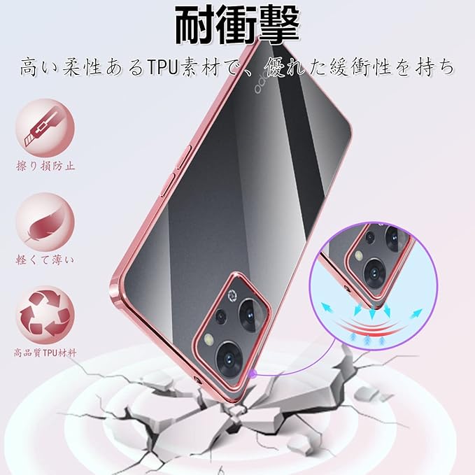 OPPO Reno9 A ケース 耐衝撃 OPPO Reno7 A ケース クリア TPU 擦り傷防止 薄型 オッポ リノ7A リノ9A バンパー 米軍MIL規格取得 カメラ保護 ストラップホール付 (ローズゴールド)