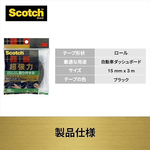 3M スコッチ 取り外せる 超強力両面テープ プレミアゴールド 自動車ダッシュボード用 15mmX3m SCD-15