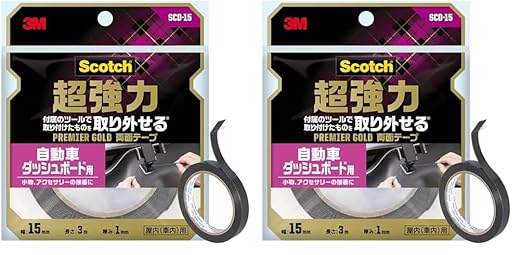 3M 両面テープ 超強力 自動車ダッシュボード用 取り外せる 幅15mm 長さ3m スコッチ SCD-15 セミロング プレミアゴールド ( 2)