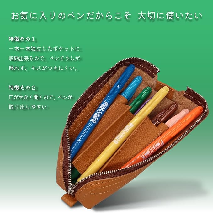革工房いんのしま ペンケース 筆箱 ロールペンケース 本革 5本入り キャメル