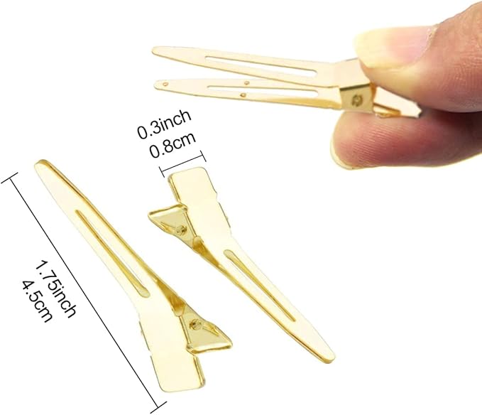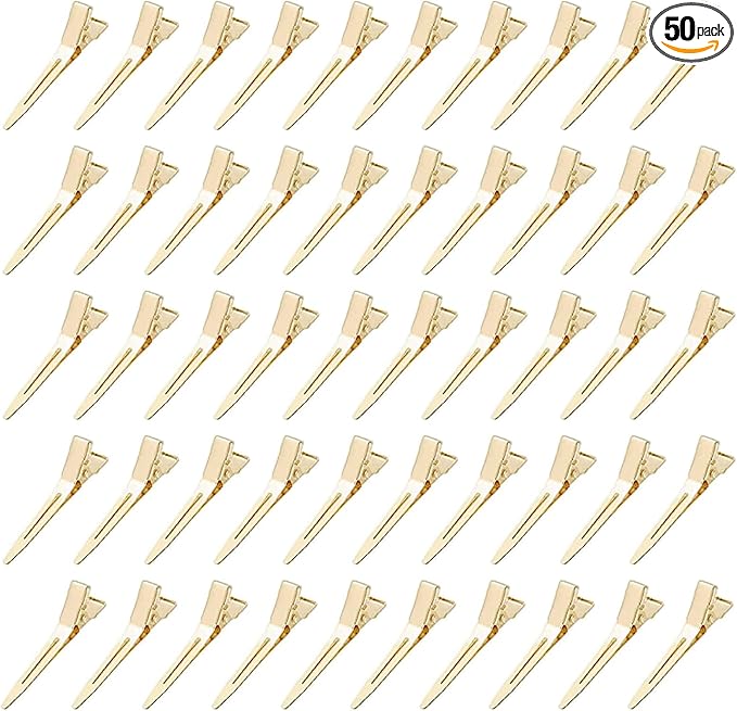 BetterJonny ダッカール ヘアクリップ プロ用 50本セット ワニ口クリップ 前髪 散髪 クリップ 美容業界 美容師 必須ツール 髪留め ヘアピン ワニクリップ ステンレス 前髪クリップ 4.5cm (ゴールド)
