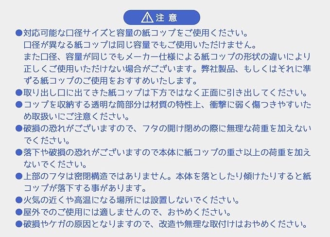 ●適応ペーパーカップサイズ:150ml(5オンス)●収納カップ数:最大60カップ