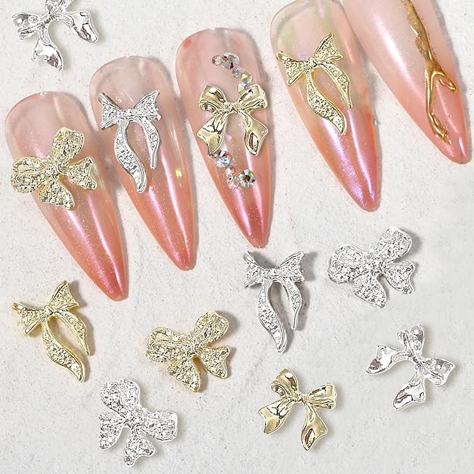 ネイルパーツ リボン 60個セット 3D立体 蝶結び メタルパーツ シルバー ゴールド ジュエリーパーツ ハンドメイド ネイルアート デコパーツ DIY(60個セット)