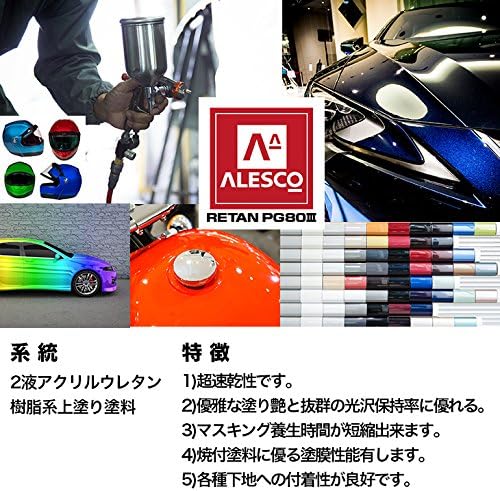 ★関西ペイントPG80 2液ウレタン塗料を小分けで販売しております。 ★無地缶に詰め替えてのお届けとなります。 ※この商品はスプレーガン塗装用のセットです。 【使用方法】 1.塗料に硬化剤を10%混入して、良く攪拌してください。 2.シンナーで約50%~70%希釈して良く攪拌し、ストレーナーでろ過してから塗装します。 【ご注意】 画像の撮影状況、モニター環境により、イメージを実際の色と違って見える場合がございます。購入後に思っていた色と違う等のクレーム・返品等は一切お受けできませんのでご了承下さい。