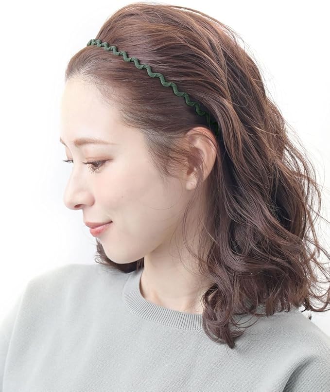 [ヴァンテーヌ VINGTAINE] シンプル ウェーブ カチューシャ オフィス ヘアアクセサリー HK-105-GR グリーン