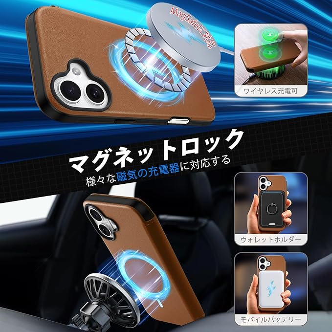 【マグネット型・RFIDブロッキング技術採用】マグネットが内蔵されているので、ベルトがなくてもフタがピタッと閉まります。本iPhone 16ケースはカードスロット&ポケットの裏地につける布はRFIDブロッキングライニングを採用しています。先進的なRFIDブロッキング技術を利用して、信号をブロックして、ICカードの情報や個人情報などを安全に守ります。信号がブロックするから、カードをケースに入れたまま反応しない場合は、カードを取り出してご利用ください。