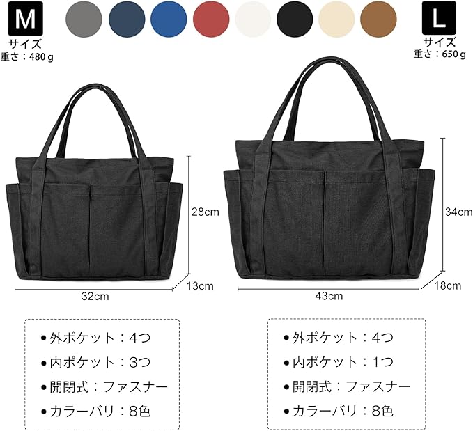 [imeetu] トートバッグ マザーズバッグ キャンバス トート レディース メンズ 肩掛けバッグ グローサリー 通学 帆布 大容量 多機能 無地 (Lサイズ)