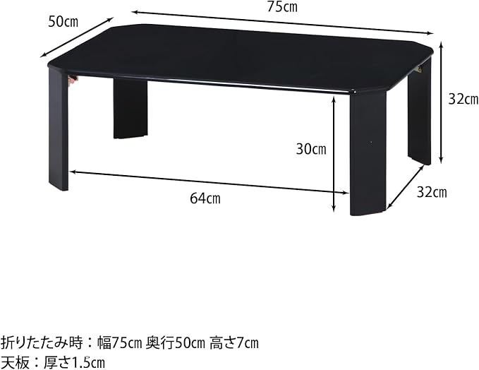 不二貿易(Fujiboeki) ローテーブル 折りたたみテーブル 幅75 奥行50 高さ32cm ブラック UV塗装 お手入れ簡単 角が丸い ルーチェ 38417