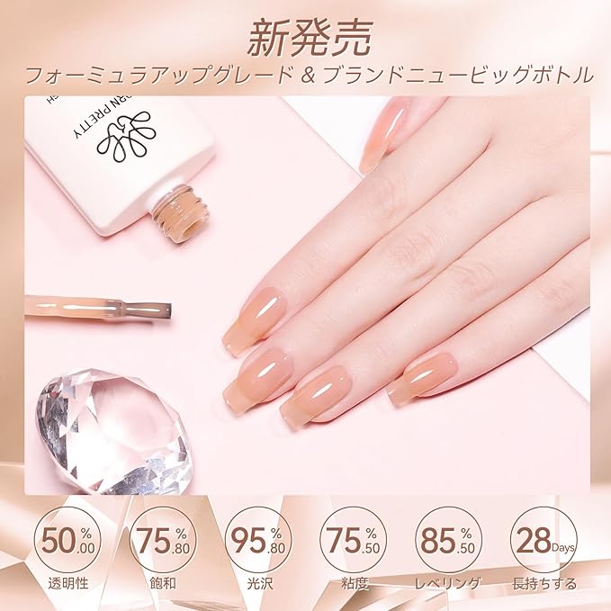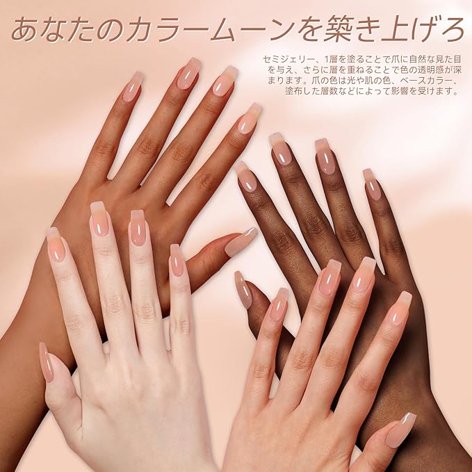 【光沢UP・発色抜群】 ジェルブラシで塗りやすいよう、やや硬めのテクスチャーを採用、なめらかな柔らかいテクスチャーを採用、絶妙な透け感と奥行き感でうるうる、ぷるぷるカラージェルネイルに!適当なステップに従って、輝く艶が最長28日以上持続するに挑戦!
