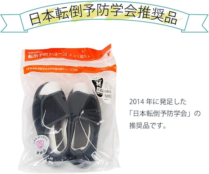 「日本転倒予防学会推奨品」脱げや、わずかな段差などでの転倒を予防する室内専用シューズ。