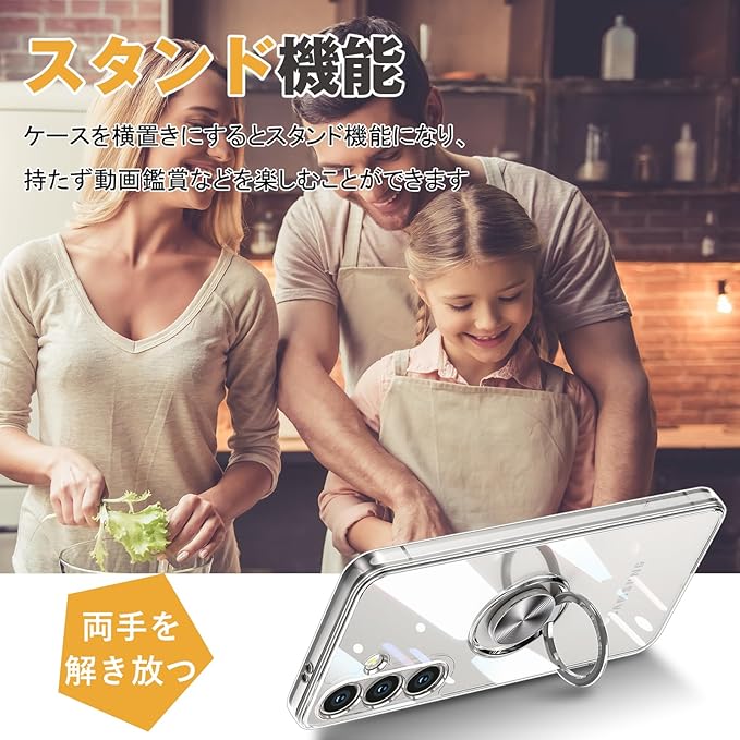 Galaxy S24 用 ケース クリア リング付き Samsung ギャラクシー S24 / SC-51E / SCG25 カバー 透明 おしゃれ OURJOY スマホケース メッキ加工 ソフトケース 耐衝撃 軽量 薄型 ストラップホール付き スタンド機能 車載ホルダー対応 携帯ケース・クリア