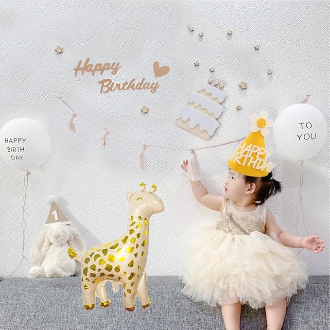 誕生日 飾り 可愛いシンプル 誕生日 飾り付け セット 壁に飾る用のhappy birthdayフェルト生地バナー ハーフバースデー 1歳 100日祝い 女の子 男の子 ハッピーバースデー 飾り キリン バルーン ケーキトッパー タッセル タペストリー バースデー 飾り 大人 写真背景 子供 飾り お祝い Birthday Party Decorations (1歳 誕生日 飾り)