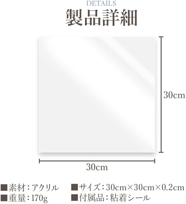 【素材】アクリル【サイズ】縦30cm 横30cm 厚さ0.2cm【付属品】粘着シール