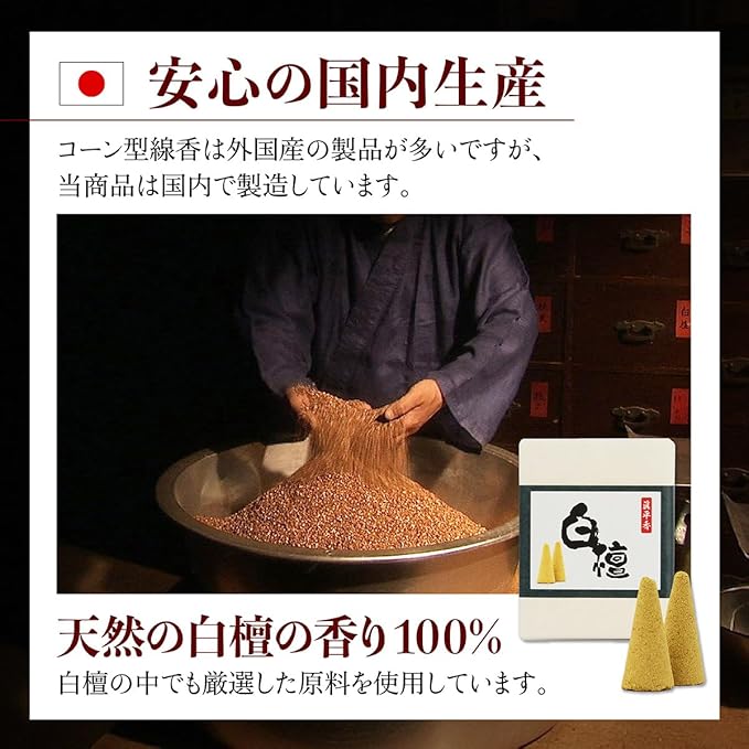 眞平香 白檀線香 コーン型 20個 天然白檀香木使用 特選
