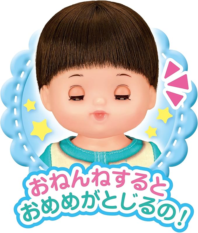 メルちゃんのおともだち、男の子のあっちゃん。<br>だっこ、ミルク、おふろ、ねんね等いろいろなお世話遊びができます。<br>おねんねするとおめめが閉じるよ。<br>スタイとミルクも付いてるよ。
