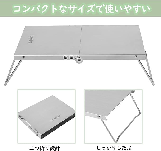 RAYKING アウトドア テーブル 折りたたみ式 ミニローテーブル キャンプテーブル 2折り コンパクトソロキャンプ 折畳テーブル アウトドア用 登山 ツーリング ソロキャンプ ポータブル ソロキャンプ