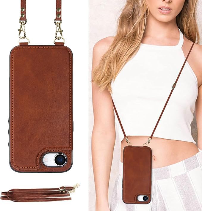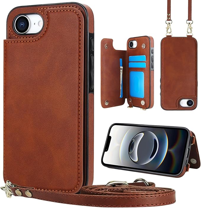 GOKIGIOD 適用 iPhone 16E ケース ショルダー 窓口式 カード入れ スマホケース ストラップ付き アイホン 16E カバー 手帳型 斜めがけ 可愛い アイフォン16E ショルダーケース いPhone16E 首かけ 肩掛け かわいい おしゃれ RFIDスキミング防止機能 ロング クロスボディ 携帯カバー ブラウン