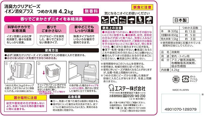 消臭力 イオン消臭プラス [大容量] 消臭ビーズ 部屋 トイレ用 置き型 無香料 業務用 つめかえ 4.2kg クリアビーズ 部屋用 玄関 リビング キッチン トイレ消臭剤 消臭 芳香剤