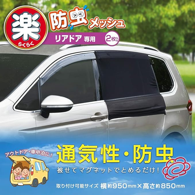 セイワ(SEIWA) 車用 防虫ネット 楽らくマグネット リアドア専用 IMP039 2枚入り メッシュ 車中泊 虫除け カー用品