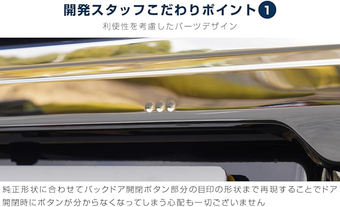 新型スペーシアシリーズ専用設計のバックドア中央に装着するメッキモールです。リアビューにシルバーのラインを追加することでスポーティーな印象を加えることができるアイテムです。素材には高品質ステンレス素材を使用しておりますので、純正パーツさながらのクオリティをお楽しみいただけます。実車にてフィッティング確認を行い、製造いたしました。商品裏面に装着済みの、両面テープで取り付けるだけの、お手軽設置で商品到着後すぐにカスタムいただけます。