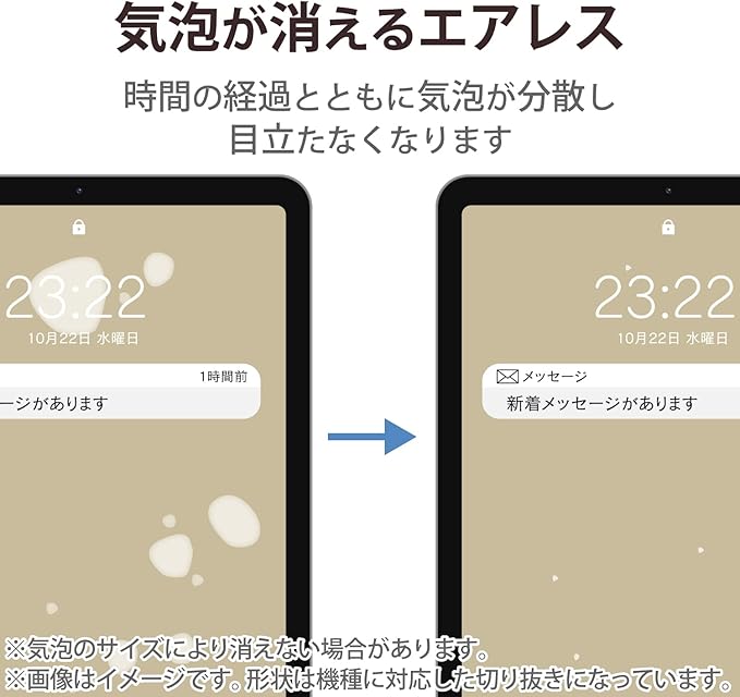 時間の経過とともに気泡が目立たなくなる特殊吸着層を採用したエアーレスタイプです。