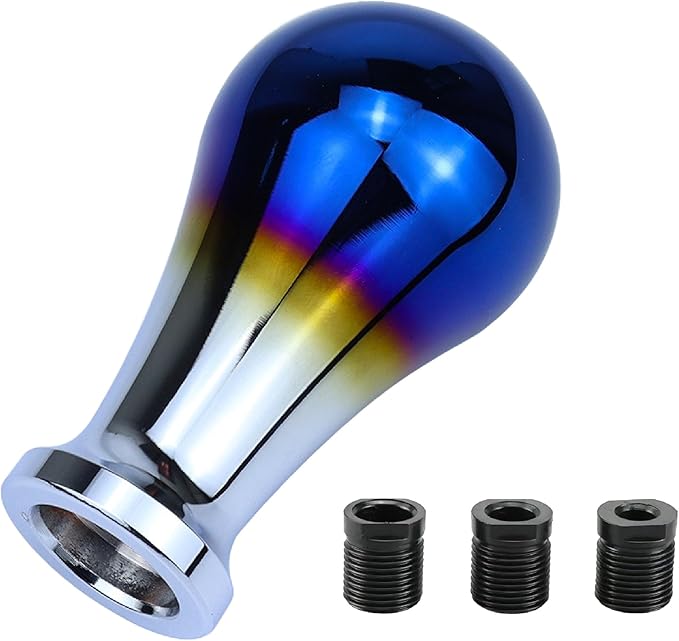 鮮やかなチタンブルーの美しいシフトノブ:こちらは、MT車に対応した汎用タイプのシフトノブです。スポーティーで高級感溢れるチタンブルーカラーで、本体はチタン合金素材を採用しています。鮮やかで華やかなデザインが個性的で、握りやすさもアップします。