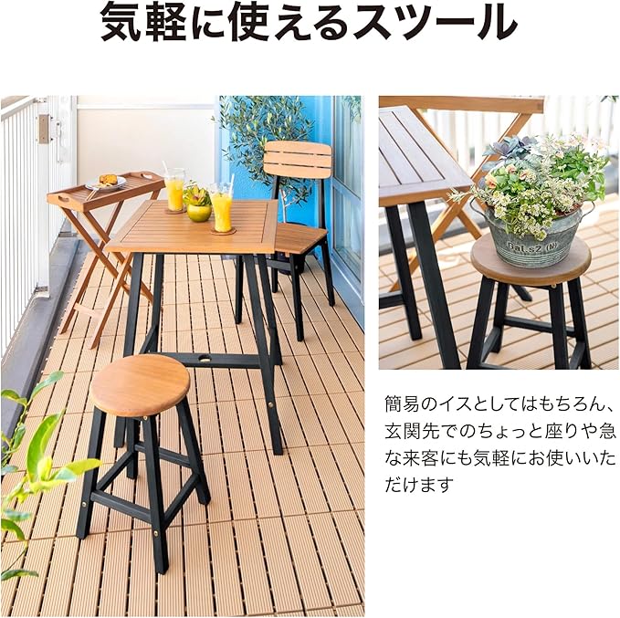 屋外でのちょっとした休憩や、植物を飾る花台としても使える多用途なアイテムです。