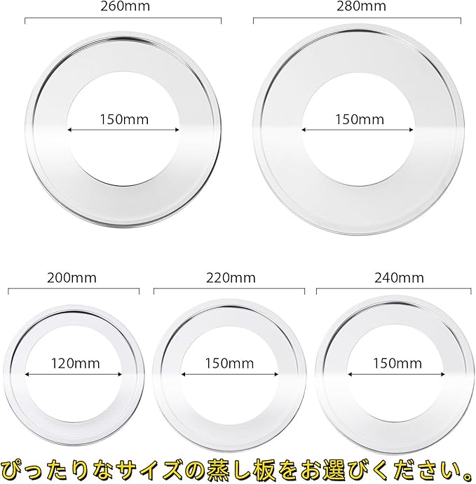 【せいろ蒸し器 - サイズ】小さめの20cm~サイズの32cmまで対応しているので、使いたいせいろの大きさと家にある鍋の大きさなどを参考にしながら、ぴったりなサイズの蒸し板をお選びください。