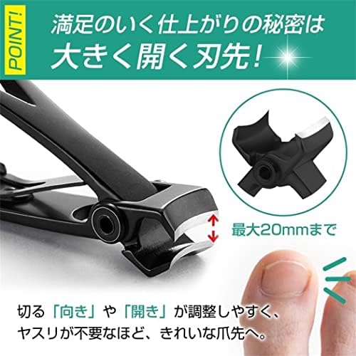足の指などの厚い爪を切るのに適した大型爪切りです。 刃部分が大きく開くので、厚い爪も楽にカットできる構造の爪切りバサミです。