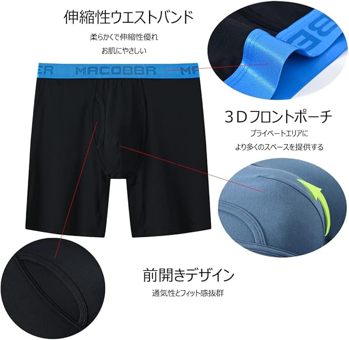 [BIATUWFEI] 涼感 ボクサーパンツ メンズ 夏 通気性 ロング丈 吸汗 大きいサイズ パンツ 下着 ボクサー 前開き 蒸れ防止パンツ またずれ防止 股上深め 4枚組 5l