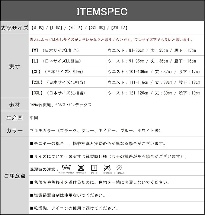 洗濯タグない、股上深め:洗濯絵表示を伝写プリントすることにより、洗濯タグによる刺激を軽減しました。股上深めのデザインとこだわりなロングさで、よりよい履き心地に達成します。ストレスなし、耐久性も優れています。