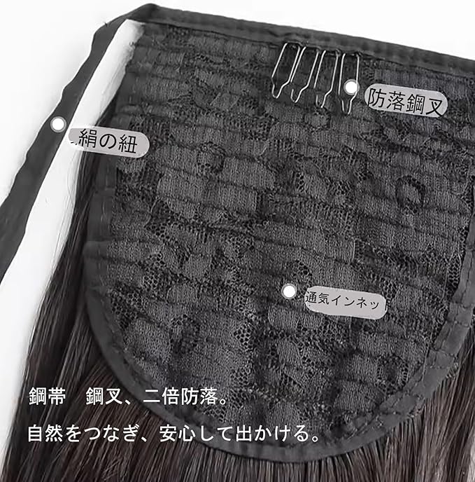 【ポニーテール 特徴】通気性がよい、軽くて自然で自毛の境目も違和感なく馴染みます。光を自然に反射、かつら特有のテカリはありません。