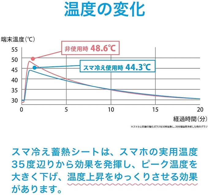 【動画視聴やゲームに最適!温度上昇を緩やかに】動画視聴やゲームをしながらの充電など、「ながら充電」時の急激な温度上昇はバッテリーを激しく痛めてしまいます。ですが、このスマ冷えシートを貼ることでピーク時の発熱を抑制、ゆるやかに温度を下げることでバッテリーの熱劣化を防ぎます。