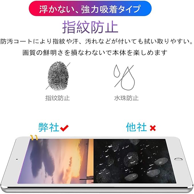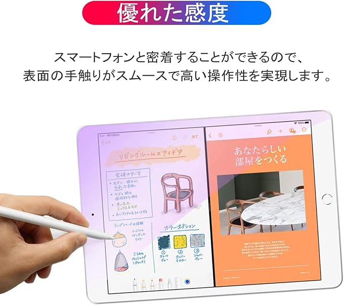 【圧倒的に鮮明な画面と快適操作を実現】 画面を美しいまま保てる特殊コーティングを施しているので、油分・汚れ・水滴等が付きにくく、付いてもさっと一拭きするだけで、綺麗に元通り。また、iPad 9.7/iPad Air2の液晶画面本来の滑らかな触り心地を実現しています。