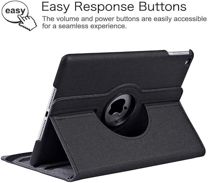 JXCX iPad 9.7 2018/2017ケース 新型(Newモデル)/iPad Air/Air2カバー iPad 9.7インチ(第6、5世代)軽量 手帳型 360度回転スタンド オートスリープ機能 3段階調節可能 固定バンド 脱落防止耐衝撃 耐久性 おしゃれデニム生地 (ブラック)