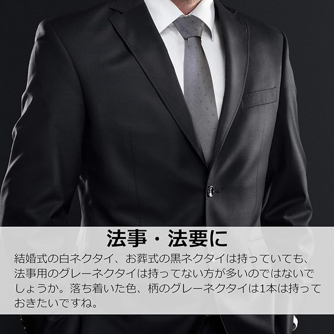 【法事、法要に】結婚式のホワイトタイ、お葬式のブラックタイは持っていても法事用のグレーネクタイは持っていない方が多いのではないでしょうか。落ち着いた色、柄のジャガード織グレーネクタイは1本は持っていたい必須アイテムです。