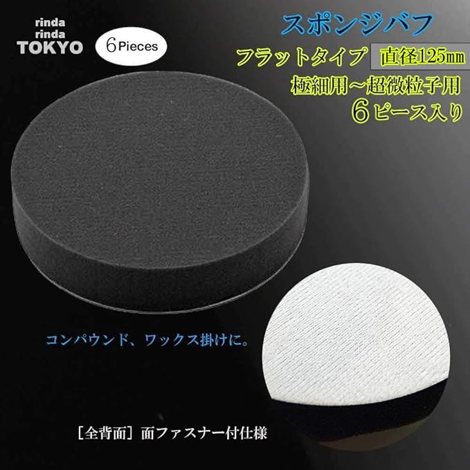 rinda スポンジバフ バフ 【 6個 】小型 125mm ウレタン 電動 ポリッシャー 極細用~ 超微粒子用 フラット タイプ マジックテープ式 洗車 研磨 ワックス