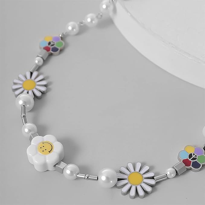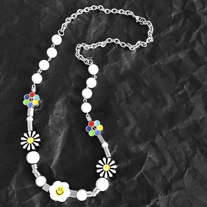【かわいい デザインのネックレス】太陽の花&スマイリーがデザインした人気の笑顔と大きなパールビーズのネックレス。チェーンスタイル、あらゆるシーンで美しくキラキラとマッチするユニセックス、ハイエンドの人気ユニバーサルデザイン。