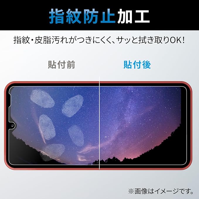 ■Galaxy A23 5G(SC-56C/SCG18)/Galaxy A22 5G/Galaxy A21 シンプル/Galaxy A21/Galaxy A20の液晶画面を傷や汚れから守る、指紋防止タイプの反射防止フィルムです。