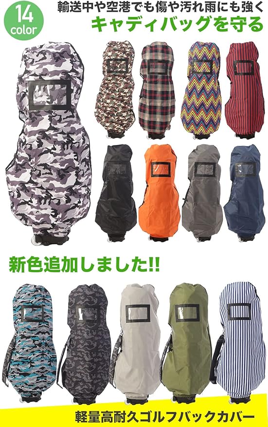 ※パソコンやスマホによっては実際の色と多少異なる場合があります。 【製品仕様】 【OOWLS 軽量高耐久ゴルフバックカバー トラベルカバー】 ・ダブルファスナー採用で被せるだけの簡単装着 ・大学ノートB5サイズまでたためるコンパクト収納タイプ ・宅急便各社対応クリア防水伝票入れ付 ・耐久性と撥水性に優れた、丈夫な厳選ポリエステル素材使用 ・10.5型、48インチ対応のキャディバッグまで対応 ・最下部のマジックテープによりカバーをしっかり固定。地面に擦らずに利用可能。 ・サイドのマジックテープからはハンドルやショルダーストラップを出して便利に持ち運びできます。 品番:JYPRF22TRC 素材:ポリエステル サイズ:132 62cm前後(平置き)10.5型 48インチ対応 カラー:ブラック、ネイビー、オレンジ、グレー、チェック、ブラックカモ、サイケデリック、カモ、ボーダー、ホワイトストライプ,ダークカモ、ブルーカモ、オリーブグリーン、カーキ 製造国:中国