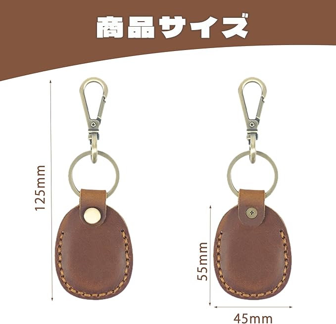 【商品詳細】キーホルダーのサイズは幅45mm 高さ55mm、キーホルダーの全長は125mm、重量は約18グラムです。内部の収納スペースには幅30mm 高さ37mm以下の物品を入れることができます