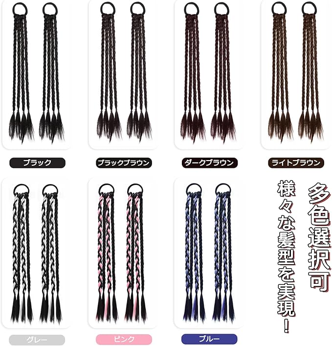 【商品仕様】①素材:耐熱ファイバー。②長さ:約45㎝。③重さ:約80g(2本)。④カラー:ブラック、ブラックブラウン、ダークブラウン、ライトブラウン、ピンク、ブルー、グレー。