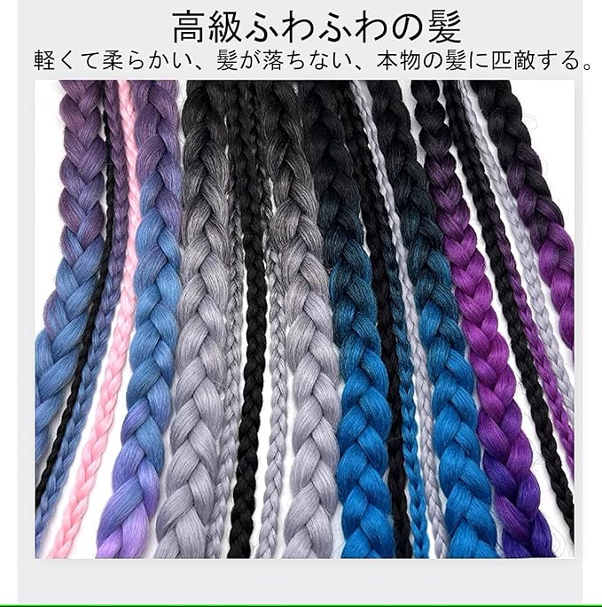 仕様:①長さ:50 cm。グラディエントバイオレット、ブラウンブラックスモッグブルー、ブラウンブラックサクラパウダー、グラディエントブルー、ブラウンブラック茶灰、グラディエント天籠紫、グラディエントシルバーグレー、7色。7種類のヘアカラーがデイリーコーデにぴったり。 材質:高級耐熱繊維。パーマをかけて染めてはいけない。ポニーテール部に取り付けられた編みウィッグは、ショートヘアでもロングヘアでも、さまざまなスタイルに合わせることができます。 クリップ:ゴムリング付きで髪に取り付けやすく、簡単にイメージチェンジ!このかつらかつらの3本編みは取り付けやすく、余分な助力や道具がなくても数分使えます。安定感抜群で一日中装着できます! ポニーテールやツールテールに直接取り付けることができ、使い方は非常に簡単で、数秒で散髪することができます。 様々な場面に適用され、子供や大人に適しています。撮影、ダンス、発表会、イベント、ロールプレイング、ハロウィン、ロールプレイング、パーティー、誕生日などさまざまな場面で使用できます