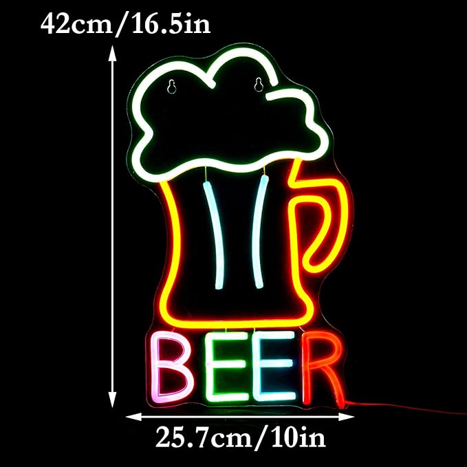 ビールネオンサイン、Beer neonsignLED多色ネオンライト店舗壁飾りネオンライトバー、キッチン、レストラン、パーティー用(42cm”x25.7”)