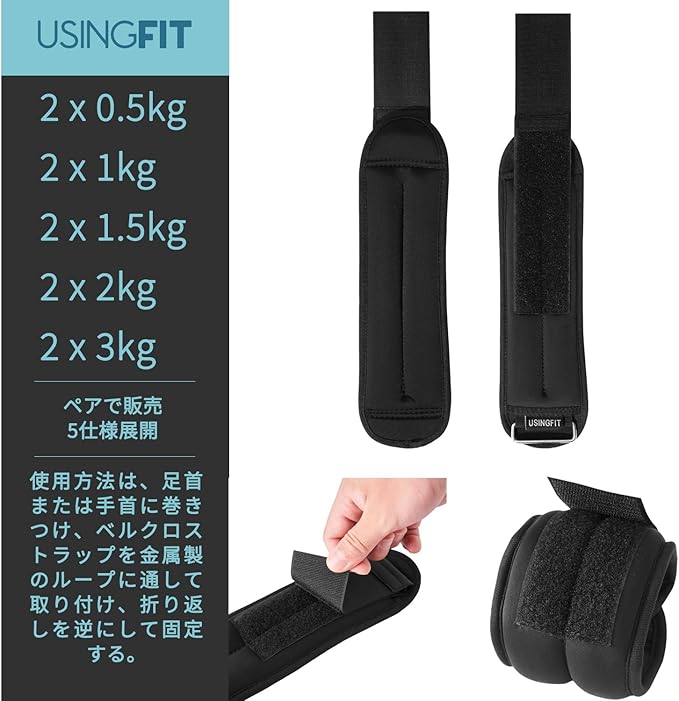USINGFIT アンクルウェイト 足首 手首 重り おもり 筋トレ ウェイト リスト 2 * 0.5Kg / 2 * 1Kg / 2 * 1.5Kg / 2 * 2Kg 2個 四仕様 砂袋 トレーニング リストウエイト パワーリスト アンクル 男性 女性 子供 ハンドウエイト パワーアンクル
