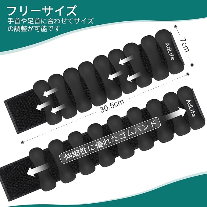 ADLife リスト&アンクルウェイト 足首 手首 おもり 筋トレ 約1kg (0.5kg 2) 2個 シリコン製ウェイト パワーリスト アンクル 防水 重さ・バンド長さ調整可能 男性 女性 子供対応 ヨガ ピラティス ウォーキング 家事 トレーニング 水中運動 パワーアンクル ハンドウエイト