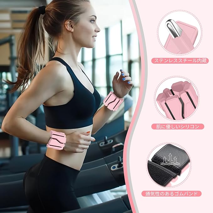 スタイル 洗える防水、耐久性、シリコン製ピンクアンクル&リストウェイトセット ベルクロバンド - 快適で調節可能